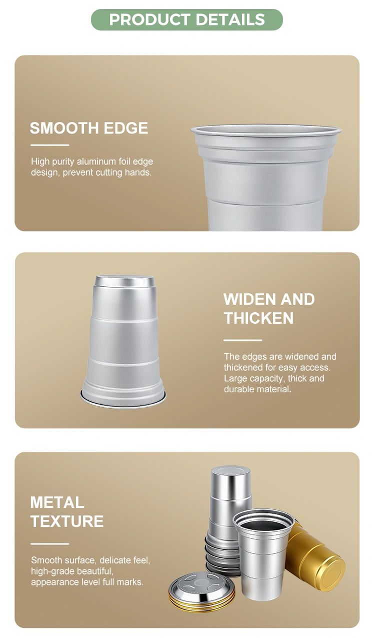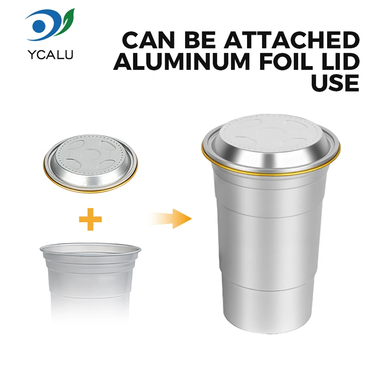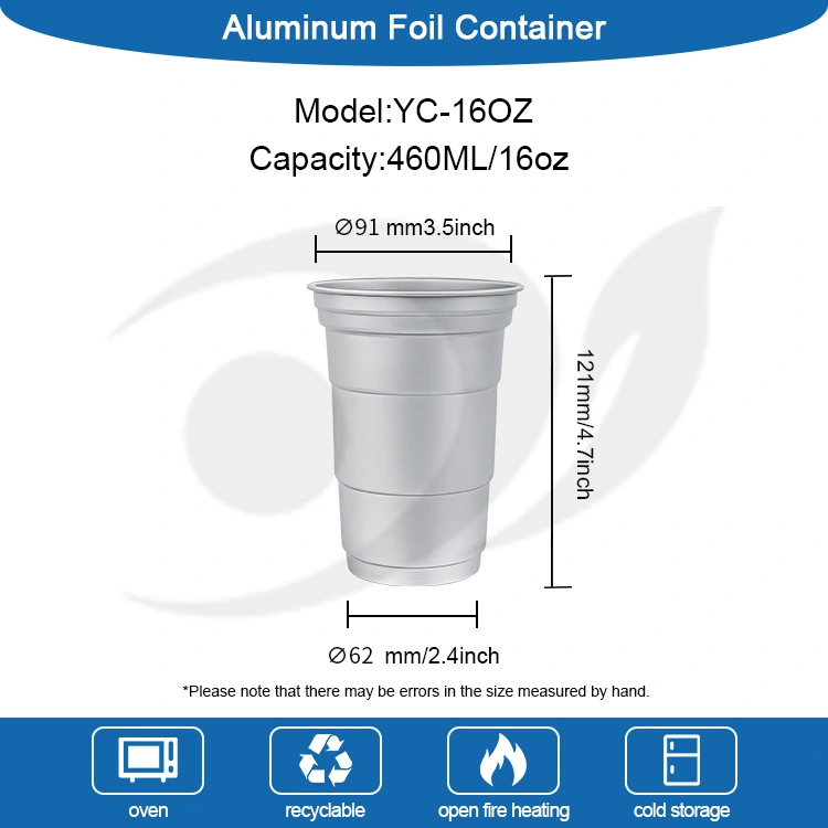 ယေဘူယျ ကွန်တိန်နာများနှင့် မတူဘဲ၊ Yunchu 16oz တခါသုံး စိတ်ကြိုက် အလူမီနီယမ်သတ္တုပြား အချိုရည်ခွက်သည် သတ်သတ်မှတ်မှတ် အခြေအနေများတွင် အမှတ်တံဆိပ်များအတွက် ထုပ်ပိုးမှုဖြေရှင်းချက်များအား ပံ့ပိုးပေးရန်အတွက် အထူးဒီဇိုင်းထုတ်ထားပါသည်။ ၎င်း၏ကျစ်လျစ်သောအရွယ်အစား (460 မီလီလီတာ) ဖြင့်၊ ဤ Customizable Disposable 16oz Custom Aluminum Foil Drink Cup သည် တစ်ကြိမ်တည်းပါသော အဖျော်ယမကာများ၏ စားသုံးမှုအလေ့အထကို ဖြည့်ဆည်းပေးပါသည်။ ဤ 16oz Custom Disposable Aluminum Foil Party Cups သည် ၎င်း၏လက်တွေ့လုပ်ဆောင်မှုများထက် ကျော်လွန်၍ စျေးဝယ်ထွက်ခြင်း၊ စျေးကွက်များ သို့မဟုတ် စခန်းချခြင်းလုပ်ငန်းများအတွက် အထူးသင့်လျော်ပါသည်။ အဓိကအားဖြင့်၊ ၎င်းသည် အမှတ်တံဆိပ်တန်ဖိုးကို မြှင့်တင်ရန် ကူညီပေးနိုင်သည်။