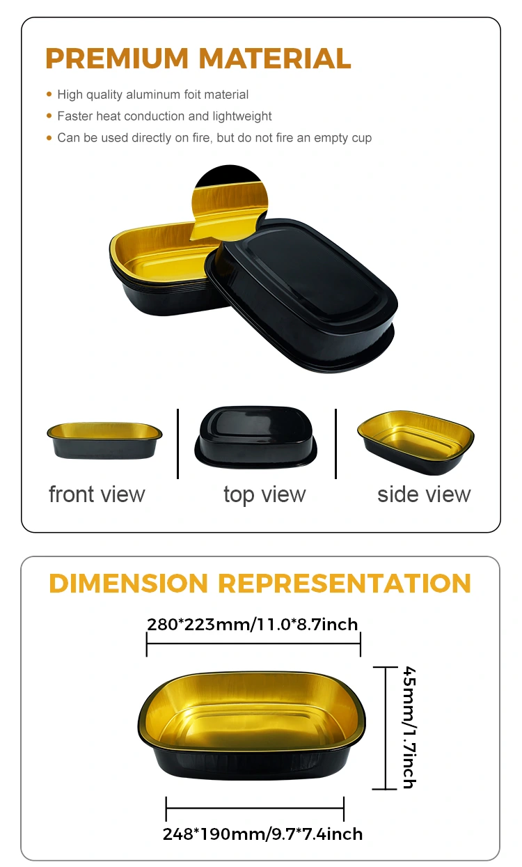 Yunchu Aluminum Foil Foil Foil Foil Foldies မှရွှေမ်မန်းသတ္တုရိုင်းသတ္တုစပ်များသို့မဟုတ်ကိုယ်ပိုင် 0 န်ဆောင်မှုတစ်ခုတည်းနှင့်ကိုယ်ပိုင် 0 န်ဆောင်မှုများသို့မဟုတ်ကိုယ်ပိုင် 0 န်ဆောင်မှုပေးခြင်းသို့မဟုတ်မိမိကိုယ်ကို 0 န်ဆောင်မှုပေးခြင်းအတွက်သင့်လျော်သည်။ ဤထုတ်ကုန်သည်နေ့လည်စာသေတ္တာများ, စားသောက်ဆိုင်များ, ဖြည့်ဆည်းဖြည့်တင်းခြင်းနှင့်ပြင်ဆင်ထားသောဟင်းလျာများကိုရွေးချယ်ခြင်းထုပ်ပိုးခြင်းအတွက်လည်းသင့်တော်သည်။ ကွန်တိန်နာသည်အရည်အသွေးမြင့်မားသောအစားအစာအဆင့်လူမီနီယမ်သတ္တုပါးဖြင့်ပြုလုပ်ထားပြီးအပြည်ပြည်ဆိုင်ရာအစားအစာအဆက်အသွယ်စံနှုန်းများနှင့်ကိုက်ညီသည်။ အပူတံဆိပ်ခတ်ရုပ်ရှင်နှင့်ပေါင်းစပ်ပြီးသောအခါ၎င်းသည်ထိရောက်သောတံဆိပ်ခတ်ခြင်းနှင့်ဟင်းချိုယိုစိမ့်မှုကိုထိရောက်စွာကာကွယ်နိုင်သည်။ ကွန်တိန်နာတွင်လွယ်ကူသောတံဆိပ်ကပ်ခြင်းနှင့်အမှတ်တံဆိပ်ပုံရိပ်ကိုမြှင့်တင်ရန်ကူညီသည့်လှပသောအသွင်အပြင်အတွက်ချောချောမွေ့မွေ့မျက်နှာပြင်ရှိသည်။ ၎င်းသည်မြင့်မားသောနှင့်နိမ့်သောအပူချိန်ကိုခံနိုင်ရည်ရှိသည်, အပူချိန်အကွာအဝေးမှ 20 ဒီဂရီစင်တီဂရိတ်အထိအသုံးပြုနိုင်ပြီးအအေးမိခြင်း, လူမီနီယမ်သတ္တုပါးပစ္စည်း 100% သည် 100% ပြန်လည်အသုံးပြုပြီးရေရှည်တည်တံ့ခိုင်မြဲသောဖွံ့ဖြိုးရေးလိုအပ်ချက်များကိုဖြည့်ဆည်းပေးသည်။