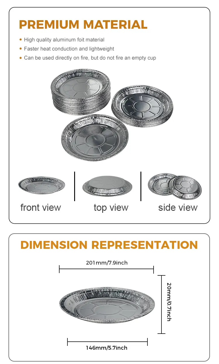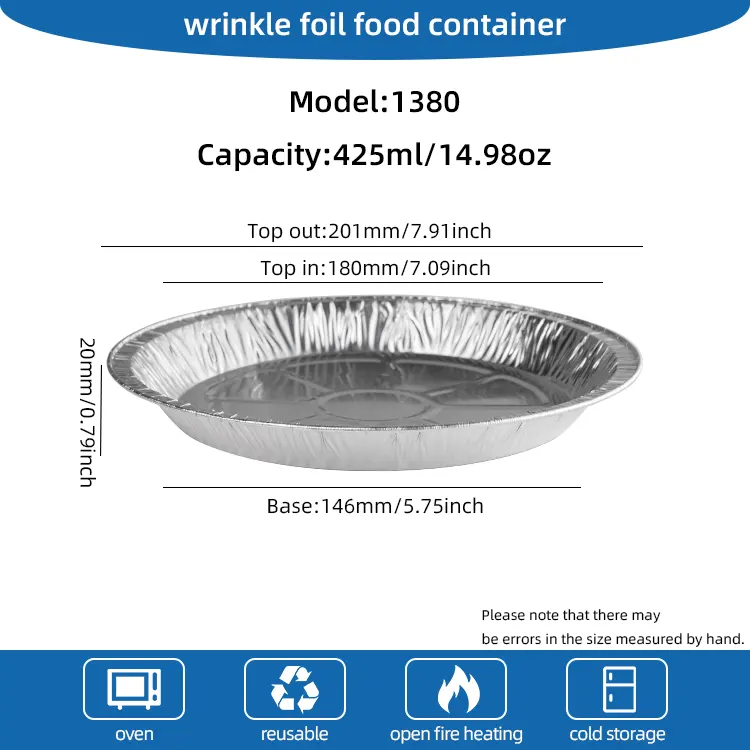 • တစ်ခါသုံး အဝိုင်းပြား လေအေးပေးစက် ငွေရောင် အလူမီနီယမ် သတ္တုပြား အစားအစာ ကွန်တိန်နာများတစ်ခါသုံး အဝိုင်းပြား လေအေးပေးစက် ငွေရောင် အလူမီနီယမ် သတ္တုပြား အစားအစာ ကွန်တိန်နာများ