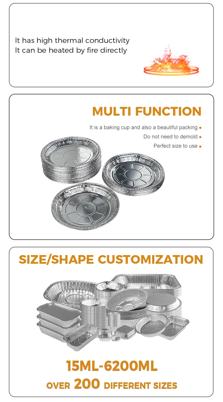တစ်ခါသုံး အဝိုင်းပြား လေအေးပေးစက် ငွေရောင် အလူမီနီယမ် သတ္တုပြား အစားအစာ ကွန်တိန်နာများ