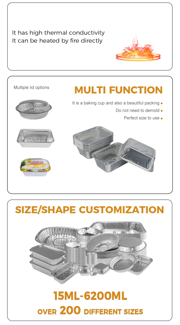 Yunchu Aluminum Foil Factory ၏ တစ်ခါသုံး စတုဂံပုံ မုန့်ဖုတ်ကိတ် ငွေရောင် အလူမီနီယံ သတ္တုပြား ကွန်တိန်နာသည် ကပ်ငြိခြင်းမှ ကာကွယ်ရန် ကြိုတင် ဆီလိမ်းရန် မလိုအပ်ပါ။ မုန့်ဖုတ်ပြီးရင် အလွယ်တကူ နှိမ်ထားနိုင်ပါတယ်။ ကိတ်မုန့်ပုံသဏ္ဍာန်သည် မပျက်စီးဘဲ အစားအသောက်ပြင်ဆင်ချိန်ကို သက်သာစေသည်။ တစ်ခါသုံး သန့်ရှင်းမှုမရှိသော ဒီဇိုင်း၊ လိပ်ပြီး အစာစားပြီးနောက် လွှင့်ပစ်လိုက်ရုံပါပဲ။