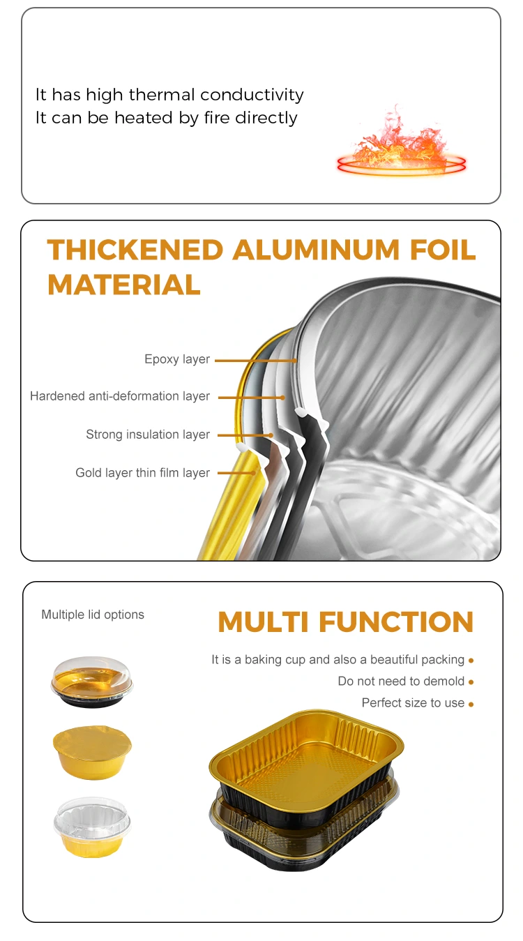 Yunchu အလူမီနီယမ်သတ္တုပြား ပေးသွင်းသူ၏ တစ်ခါသုံးစတုဂံပုံဆောင်သည့် အလင်း-နံရံကာထားသော အလူမီနီယမ်သတ္တုပြားများကို အစားအသောက်အဆင့်ဖြင့် ပြုလုပ်ထားသည်။ ၎င်းတို့ကို တင်းကြပ်စွာ စီမံပြီး စစ်ဆေးထားပြီး ထူးခြားသောအနံ့မရှိပါ။ ထုတ်လုပ်မှုလုပ်ငန်းစဉ်တစ်ခုလုံးကို အန္တရာယ်ဖြစ်စေသော ဖြည့်စွက်စာများမပါဘဲ သန့်ရှင်းပြီး ဖုန်မှုန့်ကင်းစင်သော အလုပ်ရုံတွင် ပြီးမြောက်ပါသည်။ ထမင်း၊အသား၊ဟင်း စသည်တို့ကိုလည်း တိုက်ရိုက်ထိတွေ့နိုင်သည်။ ဤအလူမီနီယမ်သတ္တုပြားကွန်တိန်နာသည် FDA စံနှုန်းများကို တင်းကြပ်စွာလိုက်နာပြီး US FD A အစားအသောက်အဆင့် အသိအမှတ်ပြုလက်မှတ်ကို ကျော်ဖြတ်ထားသည်။ ပရော်ဖက်ရှင်နယ်စမ်းသပ်မှုပြီးနောက်၊ အလူမီနီယံရွှေ့ပြောင်းမှုပမာဏသည် သတ်မှတ်ထားသည့်ကန့်သတ်ချက်ထက် အဆမတန်နည်းပါးပြီး စစ်ဆေးမှုသည် စံနှုန်းအထိဖြစ်သည်။ ကျွန်ုပ်တို့သည် တရားဝင်စစ်ဆေးမှုအစီရင်ခံစာကို ရရှိထားပါသည်။ ပြည်တွင်း စားသောက်ကုန်များတွင် အသုံးပြုနိုင်ရုံသာမက ပြည်ပသို့ တင်ပို့ရန်အတွက်လည်း လိုအပ်ချက်များ အပြည့်အ၀ ပြည့်မီပါသည်။ ဆိုင်ခွဲအမြန်အစားအစာ၊ ကိုယ်ပိုင်ဟင်းလျာများ သို့မဟုတ် နယ်စပ်ဖြတ်ကျော်ရောင်းချသည့် ကုန်သည်များဖြစ်စေ စိတ်ချယုံကြည်ရပြီး အလွန်အမင်းအပူချိန်ကွာခြားချက်များကို -20°C မှ 250°C အထိ အလွယ်တကူ ခံနိုင်ရည်ရှိပါသည်။ ရေခဲသေတ္တာအအေးခန်းနှင့် အအေးခန်းသိုလှောင်မှုမှ မိုက်ခရိုဝေ့ဖ်အပူပေးခြင်း၊ မီးဖိုဖုတ်ခြင်းနှင့် မီးအဖွင့်အပူပေးခြင်းများအထိ (အပူလျှပ်ကာကိရိယာများ လိုအပ်သည်) ၎င်းကို ဟင်းချိုပူပူနှင့် ဟင်းပူပူများကို ထုပ်ပိုးရန်အတွက် အသုံးပြုနိုင်သည်။ အချိန်အကြာကြီး နွေးနေလျှင်ပင် ကွန်တိန်နာသည် ပျော့ပြောင်းခြင်း သို့မဟုတ် ပုံပျက်သွားခြင်း မရှိသလို အရည်ပျော်ခြင်း သို့မဟုတ် အန္တရာယ်ရှိသော ဓာတ်ငွေ့များ မထုတ်လုပ်နိုင်ပါ။ စားသုံးသူများ အစားအစာရရှိပြီးနောက် ကွန်တိန်နာကို ပြောင်းရန် မလိုအပ်သော်လည်း အပူပေးရန်အတွက် မိုက်ခရိုဝေ့မီးဖိုထဲသို့ တိုက်ရိုက်ထည့်ပါ။ ထို့အပြင်၊ ၎င်းသည် အပူကို ညီတူညီမျှ သယ်ဆောင်နိုင်သောကြောင့် အပူလွန်ကဲနေချိန် သို့မဟုတ် အစားအစာများ ဖမ်းမိခြင်း မရှိပါ။ ၎င်းသည် အစားအစာ၏ အရသာကို အကောင်းဆုံး အတိုင်းအတာအထိ ထိန်းသိမ်းထားနိုင်သည်။ ထမင်းဖုတ်၊ စွပ်ပြုတ်၊ သို့မဟုတ် အသားကင် သို့မဟုတ် ဖုတ်ထားသော တစ်ပိုင်းကုန်ချောထုတ်ကုန်ဖြစ်စေ ထုပ်ပိုးရန်အတွက် သင့်လျော်သည်။