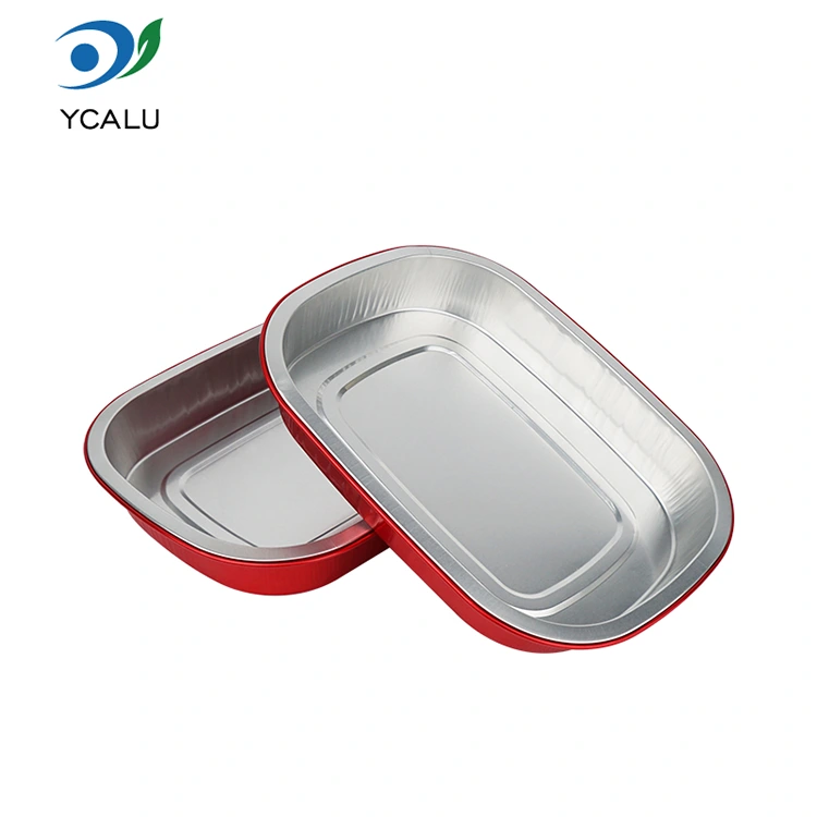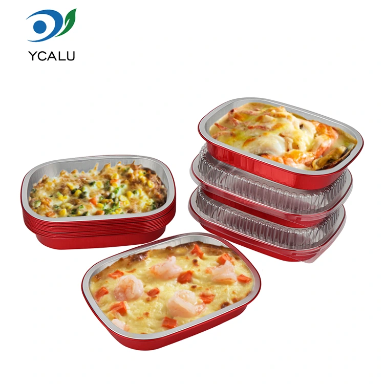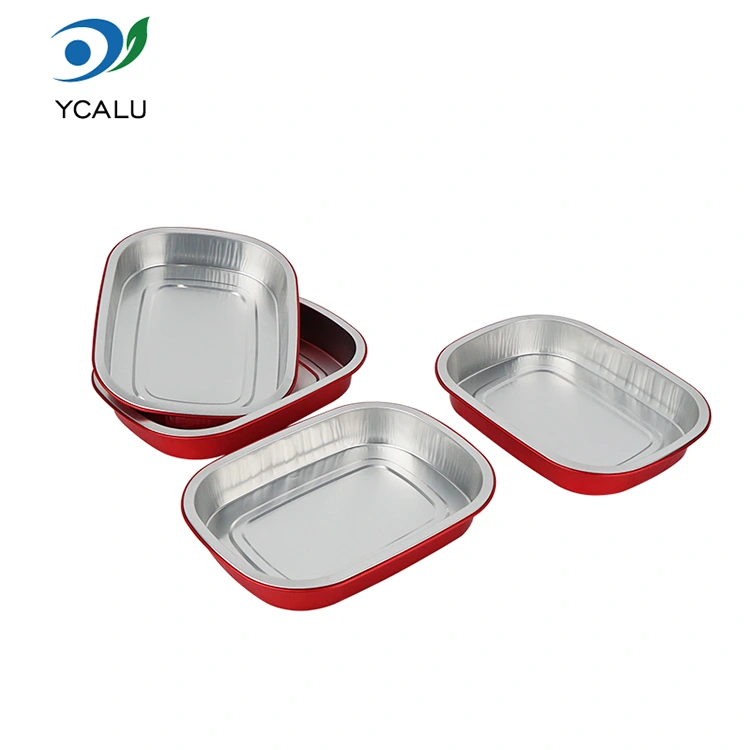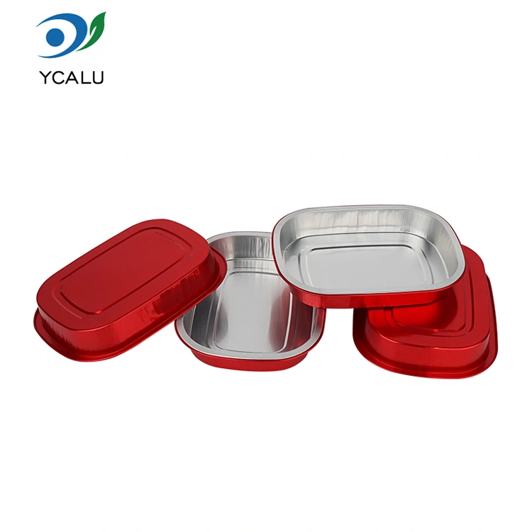 တစ်ခါသုံး အနီရောင် ထမင်းဘူး လေးထောင့် အလူမီနီယမ် သတ္တုပြား ကွန်တိန်နာများ