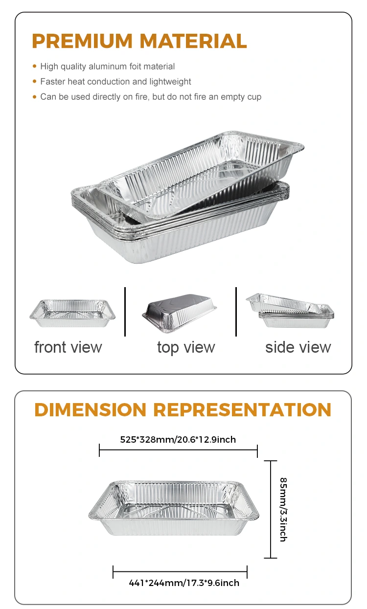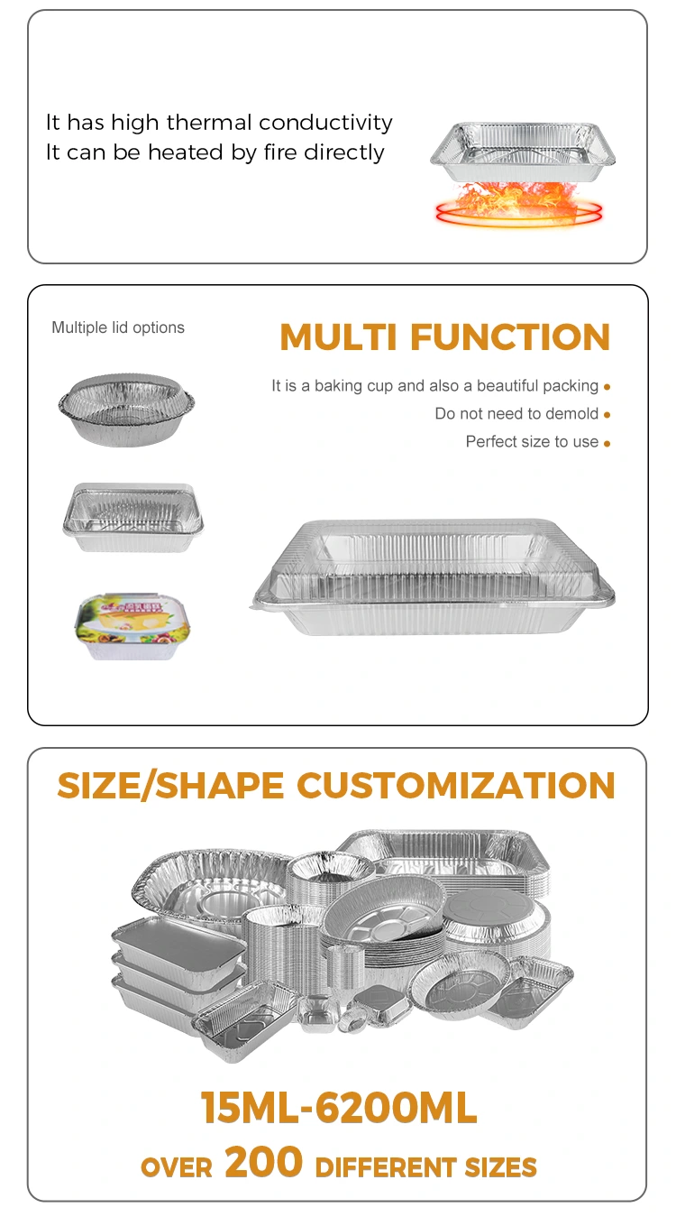 Yunchu Aluminum Fallesale Model 63200 ကြီးမားသောစွမ်းဆောင်ရည်ပြင်ပမုန့်ဖုတ်ဗန်းဖိုရမ်များ, စွမ်းဆောင်ရည်ပြင်ပမှပစ္စည်းကိရိယာများကိုအပူပေးသည့်ဒယ်အိုးငွေ၏ငွေရောင် container သည်အပူချိန်မြင့်မားစေရန်အပူချိန်မြင့်မားစွာဖြင့်အပူချိန်မြင့်မားစွာဖြင့်အပူပေးနိုင်သည်။ ထို့အပြင်ထိုထုတ်ကုန်သည်အပူခံနိုင်ရည်ရှိပြီးပူပြင်းသည့်လေကြောင်းလည်ပတ်မှုန့်ကိုမကြောက်ပါ။ ထုတ်ကုန်ကိုအသုံးပြုရန်သေချာစေရန်ကုမ္ပဏီမှတင်းကြပ်သောထုတ်ကုန်များကိုစစ်ဆေးသည်။