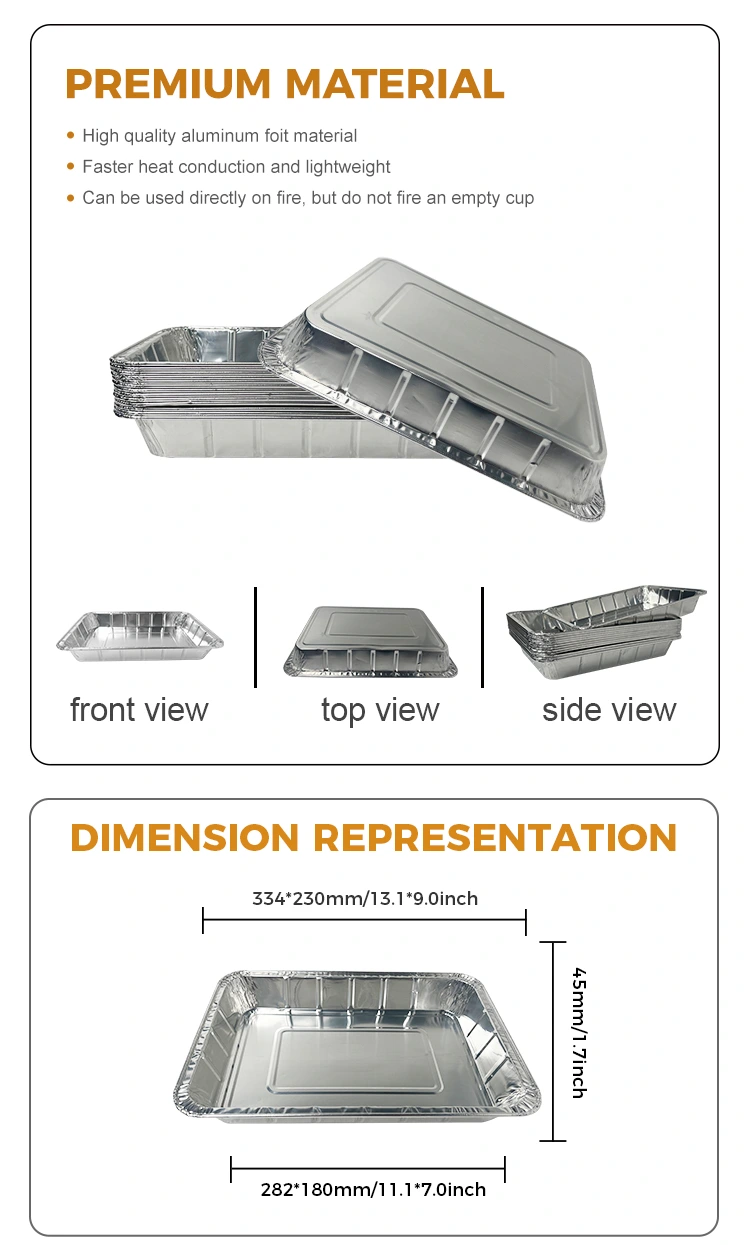 Yunchu အလူမီနီယမ်သတ္တုပါးကုန်ပစ္စည်းများသည်ကြီးမားသောကင်ငါးကောင်ရေအမျိုးအစားအလူမီနီယမ်သတ္တုပါးချိတ်ဆက်မှုအမျိုးမျိုးနှင့်တွေ့ဆုံပြီးလေကိုကြော်ငြာများ, ဤအလူမီနီယမ်သတ္တုပါးကွန်တိန်နာသည်အစားအစာနံရံပေါ်သို့စုပ်ယူခြင်းမှအစားအစာများကိုဖဲ့ဝါဒစ်သို့ 0 င်ရောက်ခြင်းကိုထိရောက်စွာကာကွယ်ရန်အတွက်အစွန်းရောက်အစွန်းဖြင့်အထူးဒီဇိုင်းပြုလုပ်ထားပြီး Pan Liner ကိုလက်တွေ့နှင့်စိတ်ပူမှုမရှိသောအလွှာများစွာဖြင့်ကာကွယ်ပေးသည်။ ၎င်းကိုအပူခံနိုင်ရည်ရှိသောအပူချိန် 520 ဒီဂရီစင်တီဂရိတ်အထိအပူချိန်မြင့်သောအပူချိန်, အပူရှိန်အပူချိန်နှင့်ပြည့်နှိမ်ခြင်း, အလူမီနီယမ်သတ္တုပါးသေတ္တာကိုဖြည့်သည်။ Hemmed Design သည်၎င်းကိုကိုင်ထားရန်အဆင်ပြေစေပြီးအနားများကိုဝိုင်းထားသဖြင့်သင်၏လက်ချောင်းများကိုခြစ်ရာတွင်သင်စိတ်ပူစရာမလိုပါ။ ချောချောမွေ့မွေ့အစွန်းများသည်အိမ်မွေးတိရိစ္ဆာန်အပြည့်အဝပွင့်လင်းမြင်သာသောအဖုံးများနှင့်အလူမီနီယမ်သတ္တုပါးသတ္တုပါးပြားများကဖြည့်စွက်ထားပြီးချက်ပြုတ်နည်းအမျိုးမျိုးအတွက်ပိုမိုသင့်တော်စေသည်။
