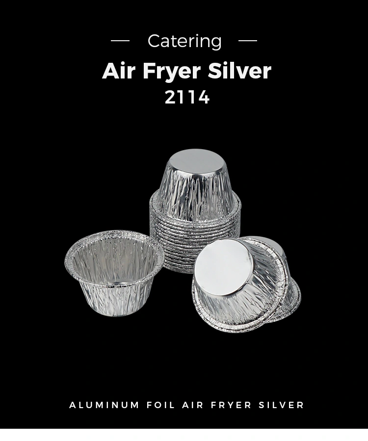 တစ်ကြိမ်တွင် သေးငယ်သော ကိတ်မုန့်ဝိုင်း air fryer သည် Silver Aluminum Foil Food Containers ဖြစ်သည်။