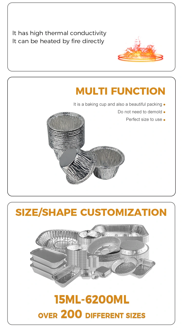 Yunchu Aluminum Foil ထုတ်လုပ်သူ၏ တစ်ကြိမ်သုံး သေးငယ်သော ကိတ်မုန့်အဝိုင်း လေအကြော်သည် ငွေအလူမီနီယံသတ္တုပြား ကွန်တိန်နာတွင် US FDA မှ အစားအစာ အဆက်အသွယ် ဘေးကင်းရေး အသိအမှတ်ပြု လက်မှတ် အောင်မြင်ပြီး EU SGS အစားအစာ ထိတွေ့ပစ္စည်း ဘေးကင်းရေး စံနှုန်းများနှင့် ကိုက်ညီပါသည်။ ပရော်ဖက်ရှင်နယ် စမ်းသပ်ပြီးနောက်၊ ၎င်းသည် အနံ့အသက်မရှိသည့်အပြင် အန္တရာယ်ရှိသော အကြွင်းအကျန်များ မရှိပါ။ အစားအစာ အမျိုးမျိုးကို တိုက်ရိုက် ထိတွေ့နိုင်သည်။ ပုံပျက်ရန် သို့မဟုတ် ချိုးရန် မလွယ်ကူပါ။ ၎င်းသည် ထိရောက်စွာ ယိုစိမ့်ပြီး ချောင်းကို ဆန့်ကျင်သည်။ ကိတ်မုန့်မုန့်၊ ပူတင်းအရည်၊ ငံပြာရည်စသည်ဖြင့် အရည်ပါဝင်ပစ္စည်းများကို တိုက်ရိုက်ကိုင်ဆောင်ထားနိုင်သည်။ အပြင်ဘက် လိပ်ထားသော အစွန်းဒီဇိုင်းသည် ခြစ်ရာကို ဆန့်ကျင်ကာ သင့်လက်များကို ကုတ်ခြစ်နိုင်ခြေကို လျှော့ချပေးသည်။ အပူချိန်ခံနိုင်ရည်အကွာအဝေးသည် -40 ℃မှ 220 ℃အထိရှိပြီး ၎င်းကို လေကြော်များ၊ မီးဖိုများ၊ ရေနွေးငွေ့များနှင့် မိုက်ခရိုဝေ့ဖ်မီးဖိုများ (အလတ်စား-အနိမ့်အပူ) နှင့် လိုက်လျောညီထွေဖြစ်စေနိုင်သည်။ ကိတ်မုန့်အသေးစားများနှင့် ကြက်ဥအကာများကို ဖုတ်ရန်အတွက် လေအေးပေးစက်ထဲသို့ တိုက်ရိုက်ထည့်နိုင်ပြီး အေးခဲထားသောပါဝင်ပစ္စည်းများကို ဖျော်ပြီးနောက် ချက်ပြုတ်ခြင်းနှင့် ဖုတ်ခြင်းဆိုင်ရာ လိုအပ်ချက်အမျိုးမျိုးကို ဖြည့်ဆည်းပေးရန်အတွက်လည်း အသုံးပြုနိုင်သည်။